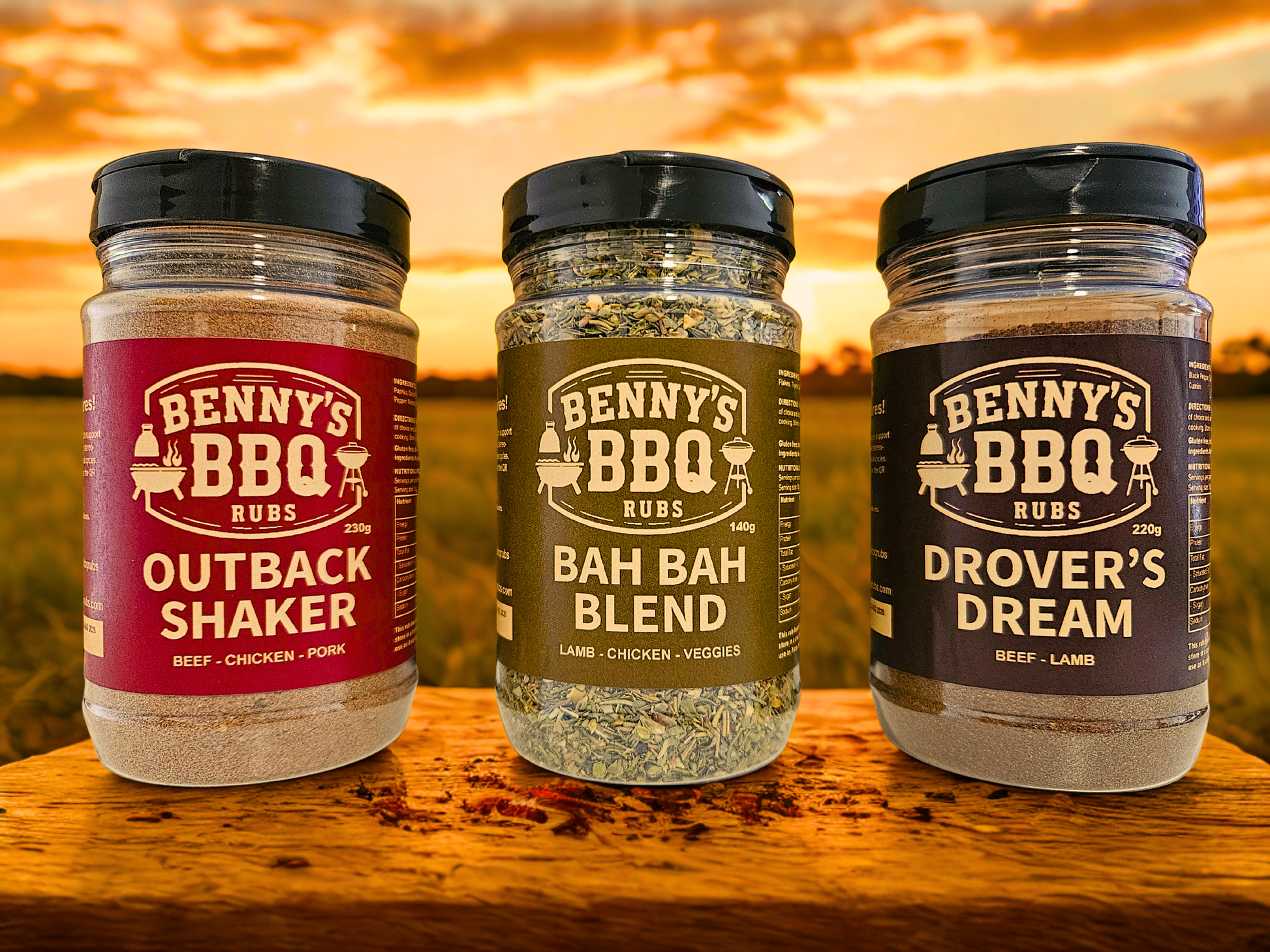 The OG Crew Pack is your ticket to BBQ stardom. Bah Bah Blend, Drover’s Dream, Outback Shaker. Three rubs, unlimited flavour, and no excuses for a boring feed. These rubs were used and develop over the last few years while cooking over the campfire for the SU Outback Road Trips. You are sure to experience the flavour of outback cooking in the comfort of your own home or backyard BBQ!